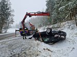 Gestern wurden wir zu einem Verkehrsunfall mit einem Pkw und vier Insassen alarmiert. Das Fahrzeug geriet auf der Schneefahrbahn ins Schleudern, rutschte über eine Böschung, überschlug sich und kam schließlich am Dach zum Liegen.
